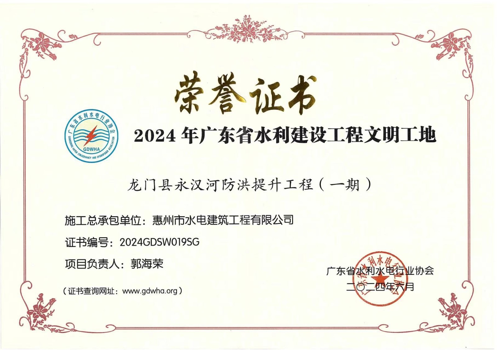 惠州市水電建筑工程有限公司成立于一九六四年四月,隸屬惠州市水務集團有限公司,是一家國有綜合性施工企業(yè),主營水利水電工程、房屋建筑、市政工程等施工業(yè)務。公司擁有水利水電工程施工總承包一級、建筑工程施工總承包一級、市政公用工程施工總承包一級、公路工程施工總承包三級,公路路基、路面及建筑裝修裝飾專業(yè)承包二級,環(huán)保工程、機電安裝、河湖整治、輸變電工程專業(yè)承包三級等經(jīng)營資質(zhì)……